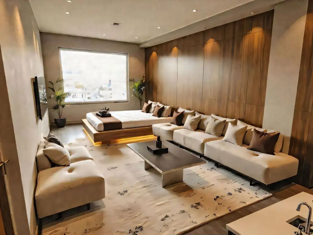 2. Living comedor dormitorio: Piso Porcelanato de primera calidad.