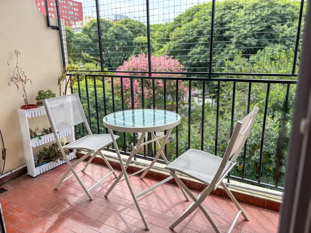 Ubicado frente a la Plaza Echeverría, en el corazón de Villa Urquiza, este departamento se destaca por su luminosidad y vista abierta al verde.