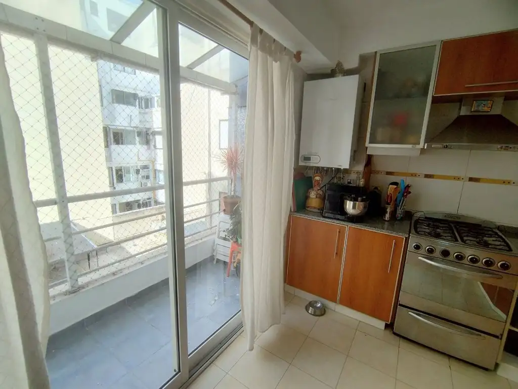 La cocina es comedor con gran espacio de guardado, tiene excelente ventilación y luminosidad dado que cuenta con un ventanal para salir a un segundo balcón al contrafrente, donde se encuentra el lavadero .