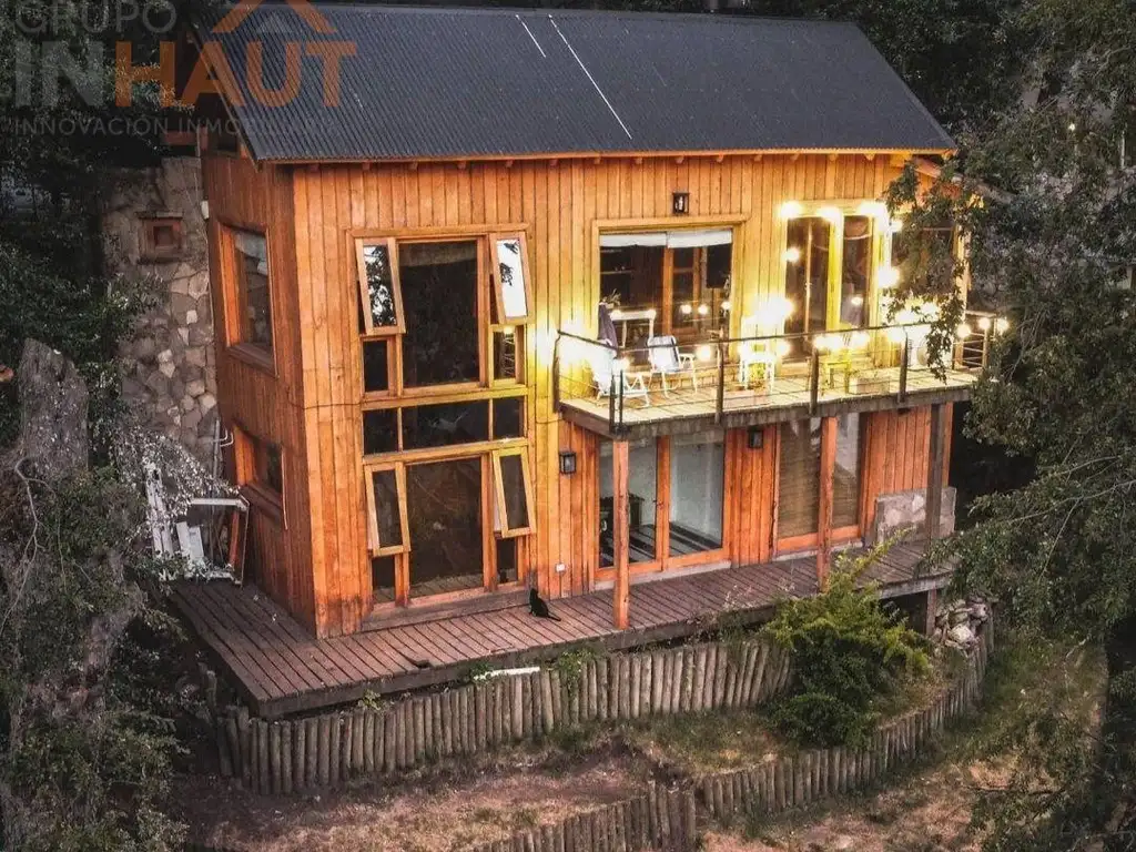 La propiedad se desarrolla en dos plantas sobre un lote propio de 346 m2, con una superficie cubierta aproximada de 100 m2. Construida con materiales nobles como lenga y piedra, se destaca por su estilo cálido de montaña y su excelente calidad constructiva.