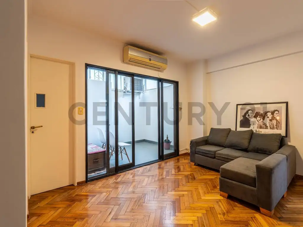 Departamento Mono dividido con dormitorio en excelente estadio, cocina separada y un gran patio aterrazado. La unidad es muy luminosa