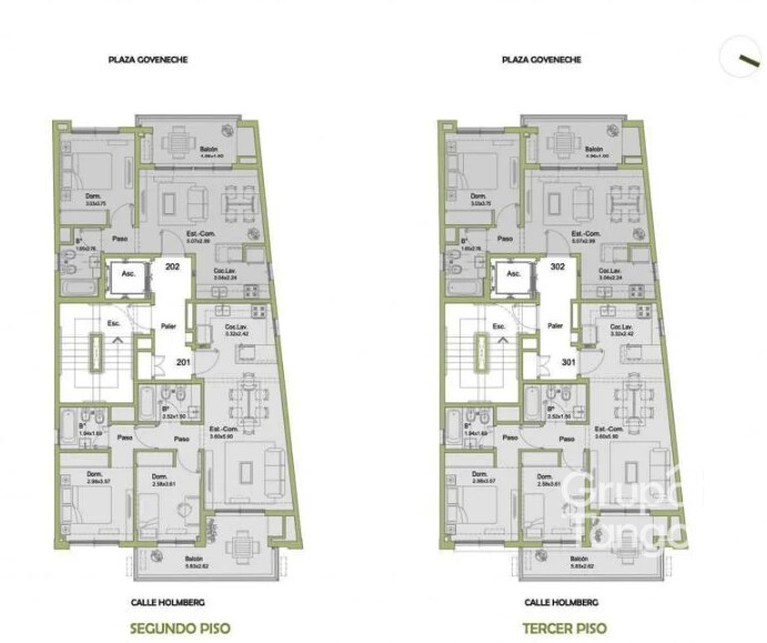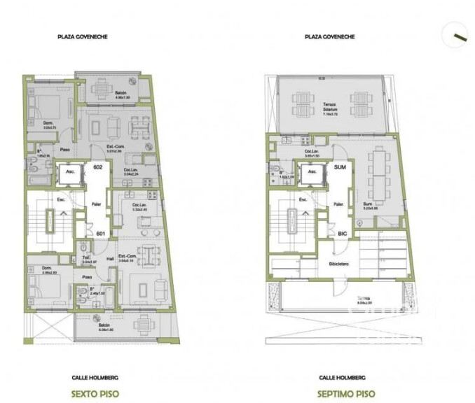 * Pisos: Todos los ambientes principales pisos de porcelanato, los sectores de baño y cocina tendrán cerámicos o porcelanatos. En balcones y terrazas tendrán pisos cerámicos para exterior.