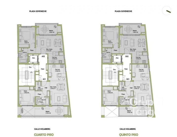 * Paredes Interiores: Serán terminadas en yeso y pintura base, los espacios comunes contarán con terminaciones en revoque plástico texturado color.