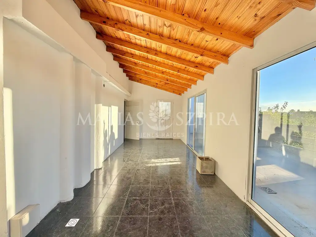Cuenta con dos dormitorios, baño completo, cocina, y espacios exteriores que marcan la diferencia: terraza propia, quincho con parrilla y lavadero independiente.
