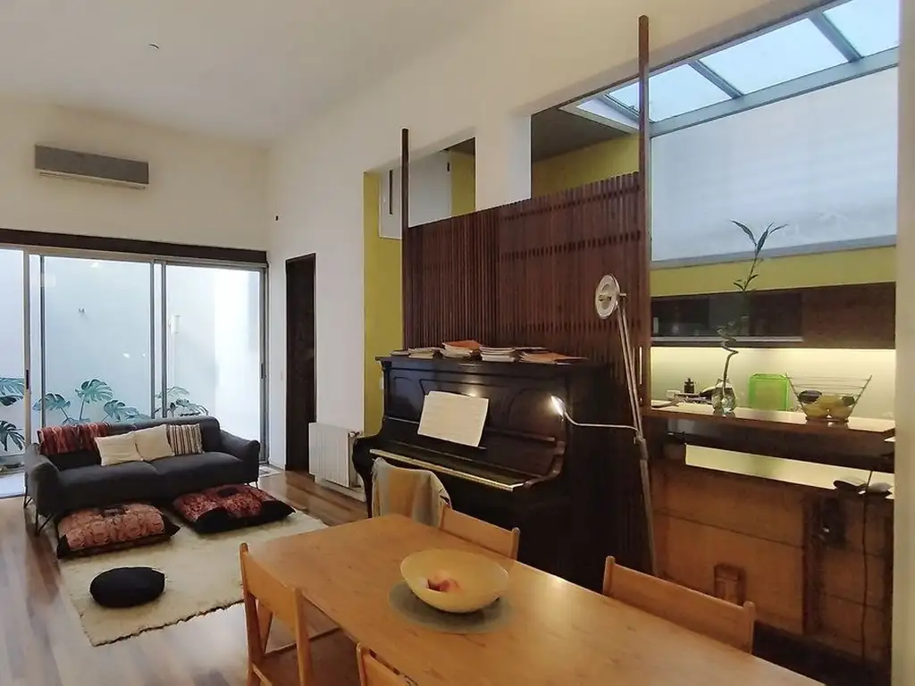 -Living comedor amplio y luminoso, con doble altura en los techos y salida directa al patio privado, perfecto para disfrutar de los días al aire libre.