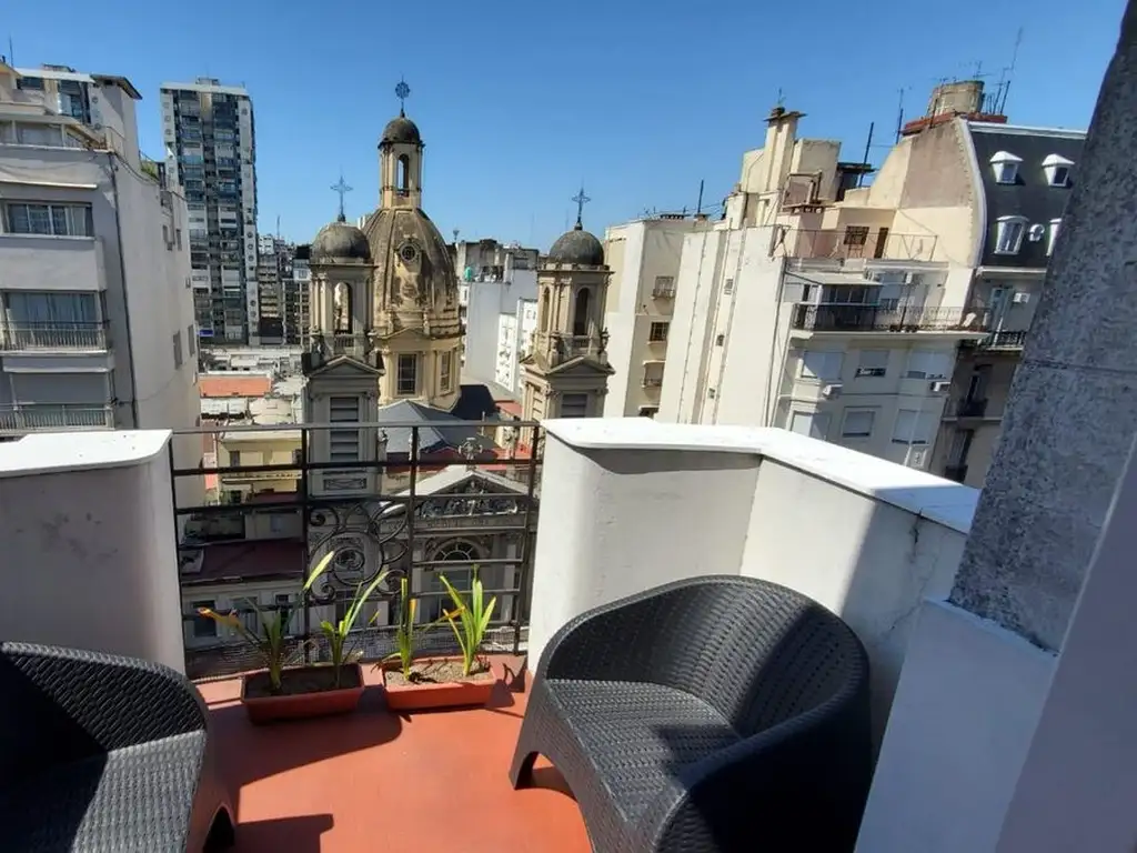 Este elegante piso, ubicado en un edificio de estilo francés, te ofrece una experiencia única. Disfruta de techos altos, lindísimos pisos de roble con guarda y molduras originales que le confieren un aire clásico y sofisticado. El luminoso living-comedor, con salida a un doble balcón con doble vidrio, te invita a relajarte con vistas a la icónica Iglesia de San Nicolás de Bari.