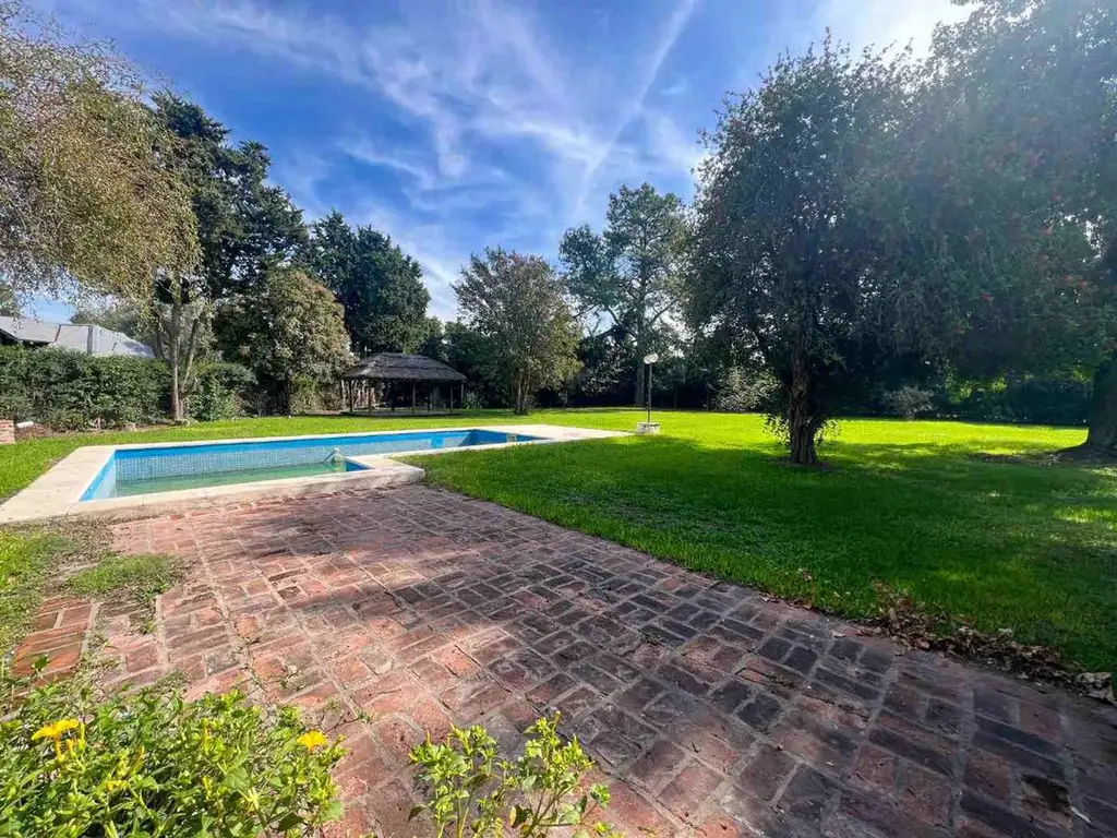 Casa tipo chalet de 5 ambientes, de 180 m2 con jardín totalmente parquizado, pileta de material, galería con parrilla y quincho de paja. Adicionalmente, cuenta con casa de huéspedes de 55 m2, equipada como quincho completo. Emplazada en Barrio El Remanso, ruta 8 km 72, es un barrio tranquilo, seguro y sin expensas. Sobre calle La Zamba, con acceso de calle pavimentada y frente al polideportivo del barrio.