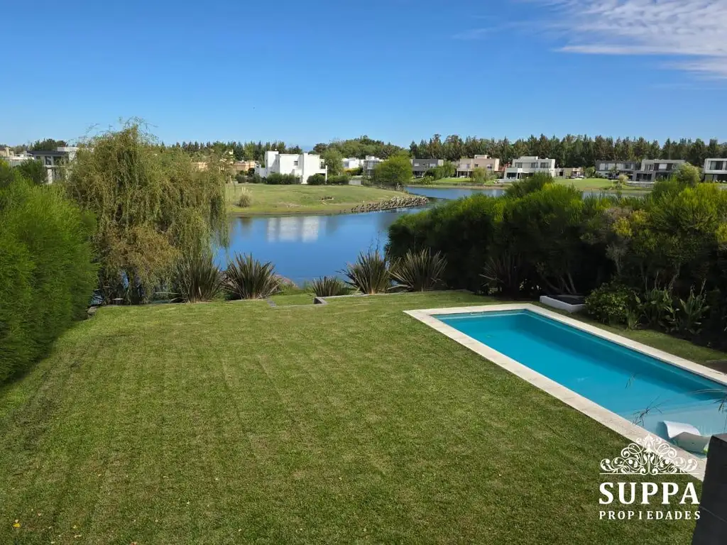 El exterior de la casa es igual de impresionante, con una galería que incluye una parrilla y cerramientos de vidrio estilo reiki, ideal para disfrutar en cualquier clima. La piscina de casi 10 metros y el fogonero complementan el espacio exterior, junto con un muelle que ofrece una vista inigualable a la laguna.