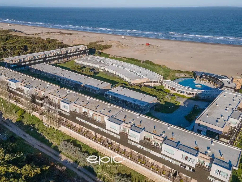 El complejo ofrece una experiencia única con salida directa a la playa, seguridad y recepción 24 hs, piscina exterior y climatizada, gimnasio, sauna, restaurante, microcine, sala de juegos y espacios recreativos para toda la familia.