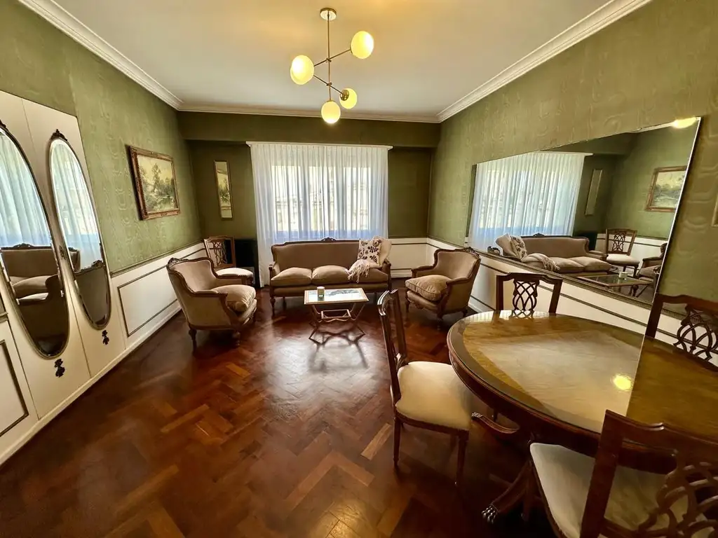 ? Living comedor de generosas dimensiones, con gran ventanal al contrafrente. Se destacan sus muebles de estilo francés y empapelado original en excelente estado, que realzan su identidad clásica.