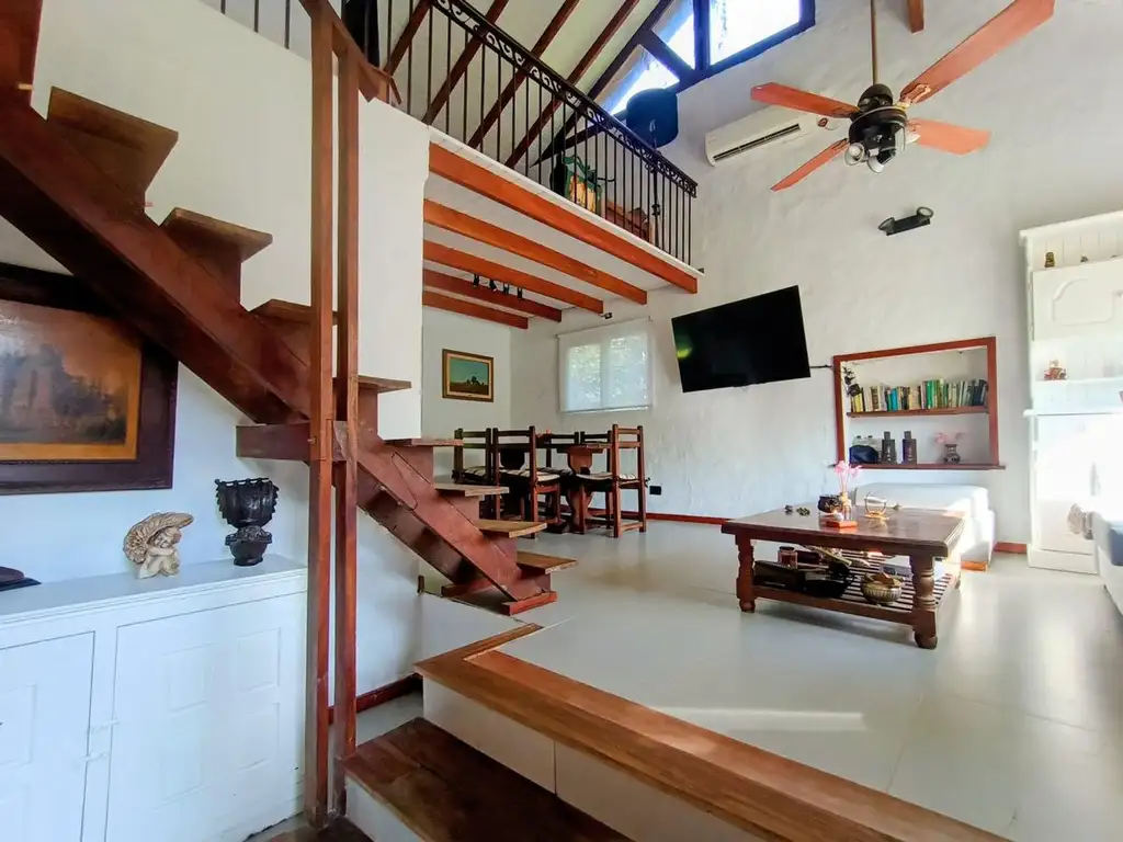 Distribuida estratégicamente en dos plantas, la casa ofrece espacios versátiles pensados para disfrutar en familia. En planta baja, un luminoso living-comedor se integra armónicamente con una cocina moderna, creando un ambiente social y acogedor. Una habitación principal con baño completo y un versátil espacio que funciona como escritorio o habitación de servicio completan esta planta.