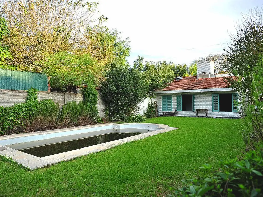 Los espacios exteriores constituyen uno de los principales atractivos. Un jardín frontal recibe la propiedad, mientras que un amplio fondo parquizado de 400 m² ofrece una pileta de 8 x 4 metros con sistema completo de limpieza y filtrado. Un quincho con parrilla, mesada con pileta y salida de gas completa el sector de expansión.