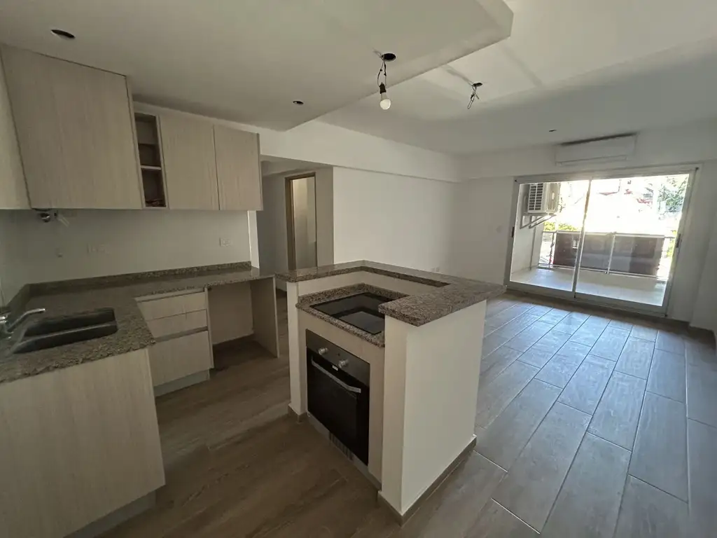 La unidad se ubica en 1ºPISO al frente con un total de 69m2. Al ingresar cuenta con living - comedor y cocina integrada con salida al balcón. Se entrega con bajo mesada y alacena completo. Horno empotrado y anafe de 4 hornallas. Siguiendo por el pasillo, se encuentra el toilette y un baño completo con mampara. ?Losa radiante con regulador en baños. Uno de los dos dormitorios, cuenta con vestidor integrado. Excelentes detalles de terminación. Seguridad mediante totem. Cochera y terraza