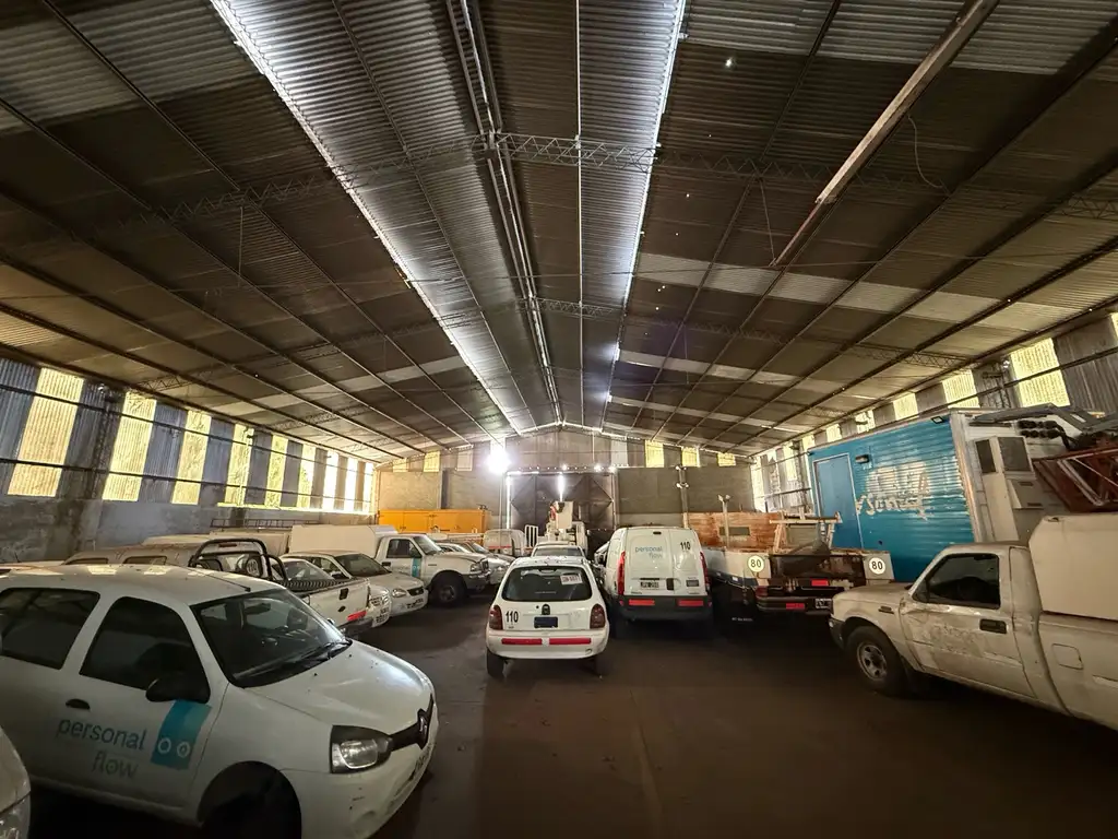El depósito destaca por su gran altura y piso industrial, ofreciendo un espacio versátil para diversas actividades. Incluye estacionamiento al frente y una calle lateral que conduce a un terreno descubierto en forma de L al fondo del inmueble.