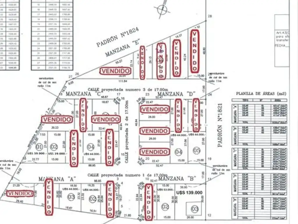Venta de terreno en Pando DESDE U$S 39.000.-