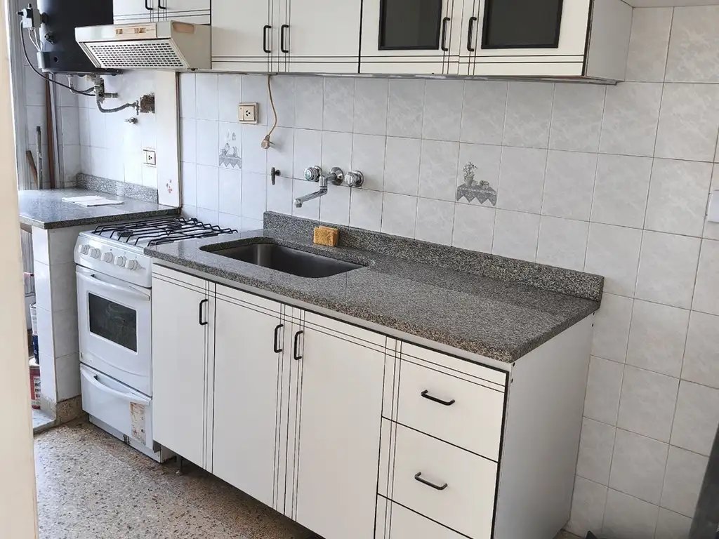 -Cocina: Integrada al lavadero, optimizando el espacio al máximo. Equipamiento completo: muebles bajo mesada (3 puertas y 3 cajones), alacena con 6 puertas, espacio dedicado para botellas y mesada de granito con bacha de acero inoxidable. Artefacto de cocina incluido.