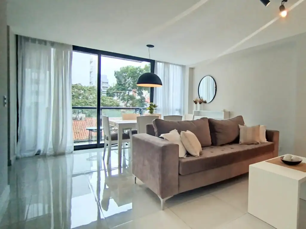 Al ingresar te recibe un living comedor a la calle, con salida a balcón, que aporta buena ventilación y conexión con el entorno urbano. El ambiente se destaca por sus pisos de porcelanato y una distribución cómoda para el día a día.