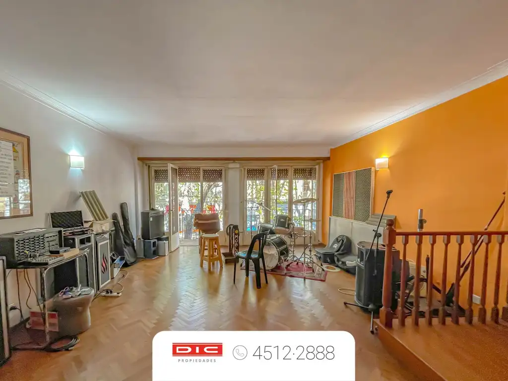Al subir la escalera encontramos un muy buen living comedor que podría ser una sala principal al frente con pisos de madera y salida a un hermoso balcón.