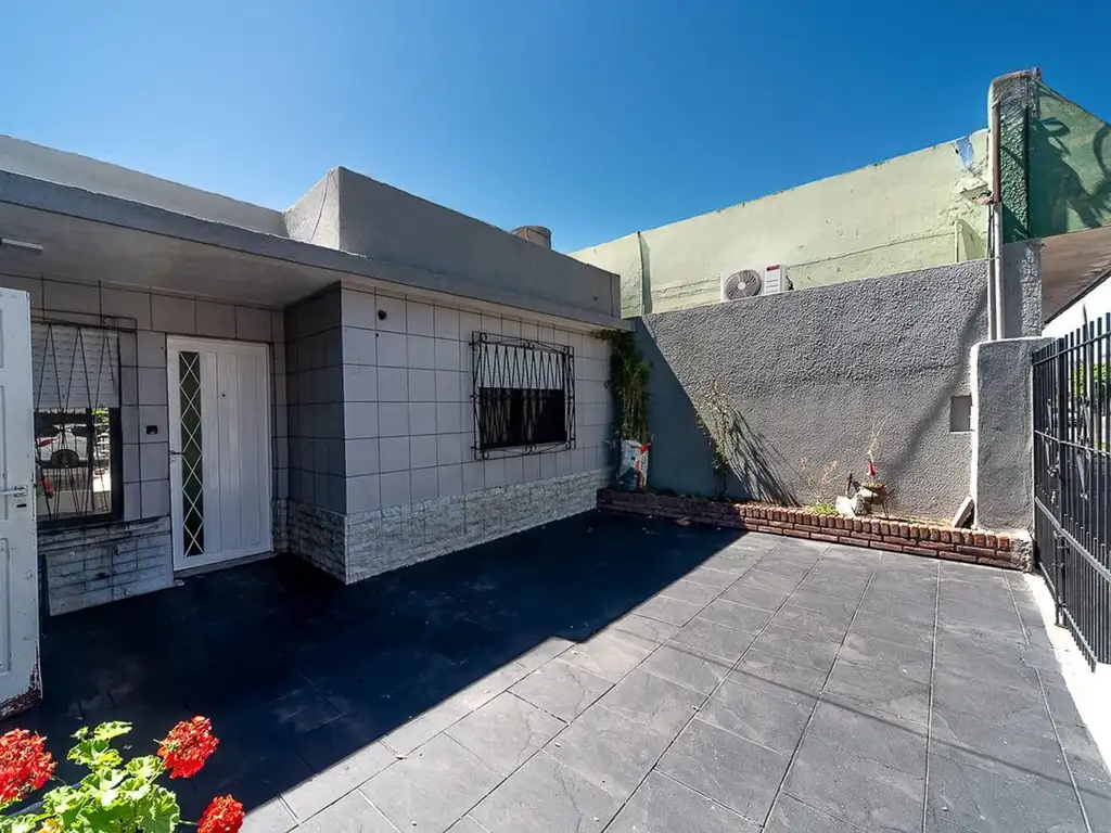 Casa de 3 ambientes al frente, desarrollada en lote con doble patio y local comercial. La propiedad principal cuenta con living, cocina independiente, dos dormitorios y un baño completo. Al frente dispone de un patio que brinda buena luminosidad y ventilación.