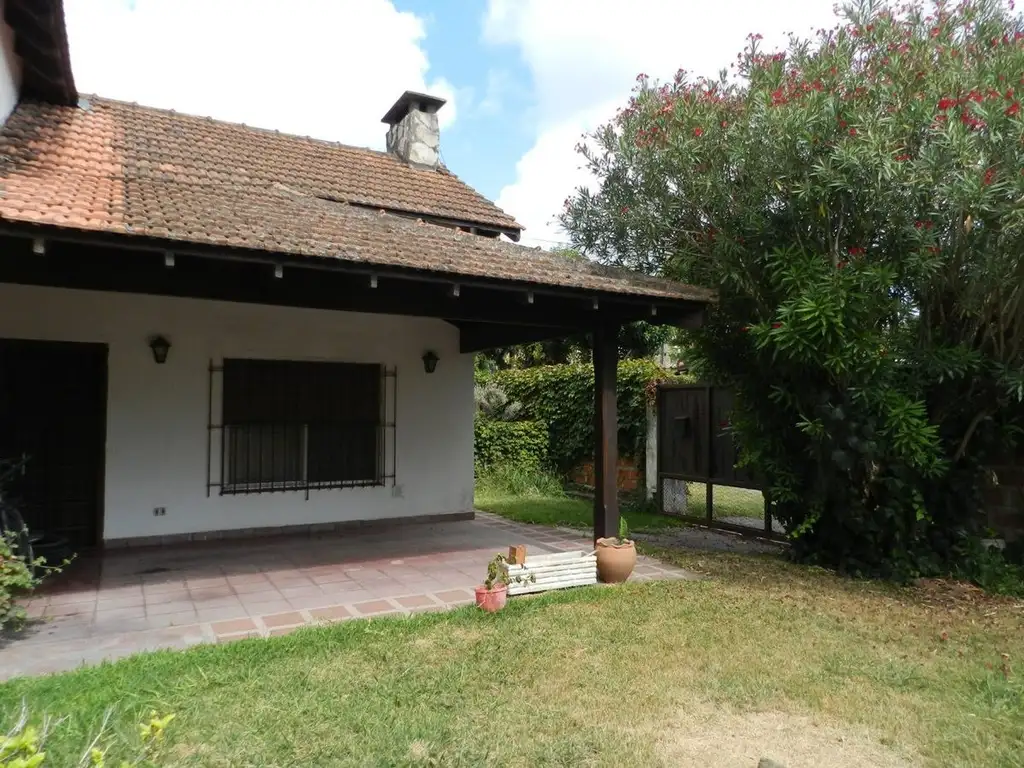 En el exterior cuenta con amplio jardín en \"L\", cochera cubierta a la que se accede a través de portón corrdizo, galería, lavadero, parrilla y espacios de guardado.