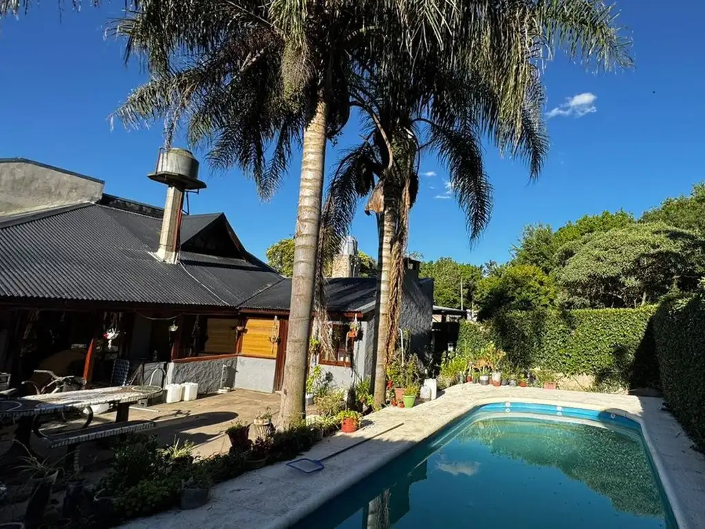 La propiedad cuenta con una pileta muy amplia, rodeada de un parque con palmeras, ideal para disfrutar del sol y la naturaleza.