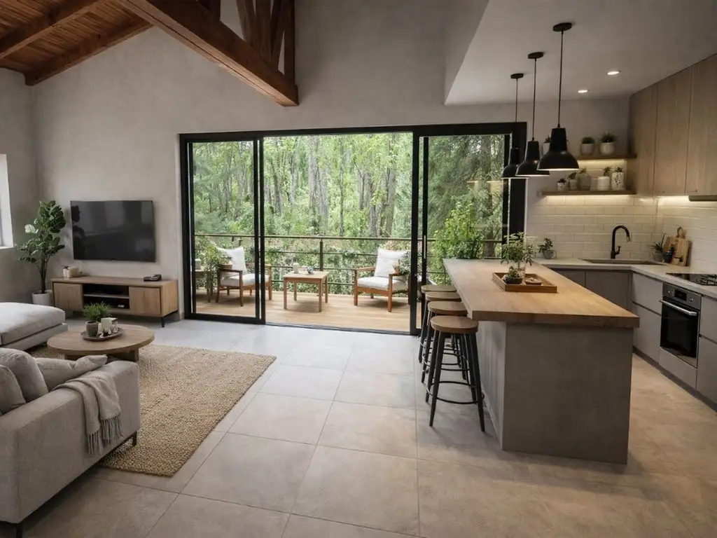 Dispone de un amplio dormitorio con vestidor, baño completo con bañera con hidromasaje y un generoso ambiente integrado de living-comedor con cocina moderna equipada con isla central. El balcón aterrazado privado incluye parrilla propia y se abre hacia vistas serenas del entorno arbolado. La calefacción se resuelve mediante losa radiante individual de alta eficiencia, y la construcción es tradicional de mampostería reforzada con terminaciones de categoría superior.