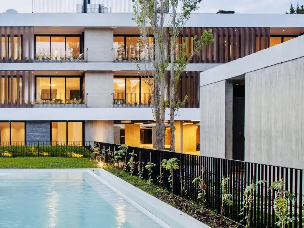 El complejo ofrece pileta, solarium, plaza verde, Sum con parrillas y juegos.