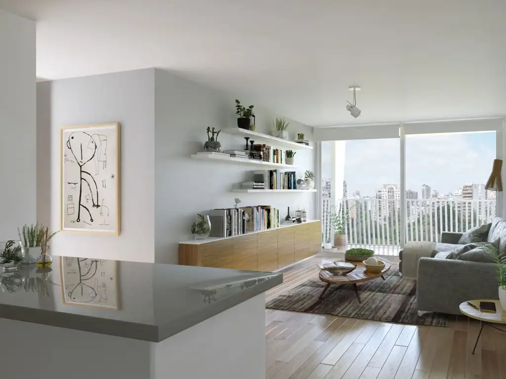 Living comedor con salida a balcón corrido.