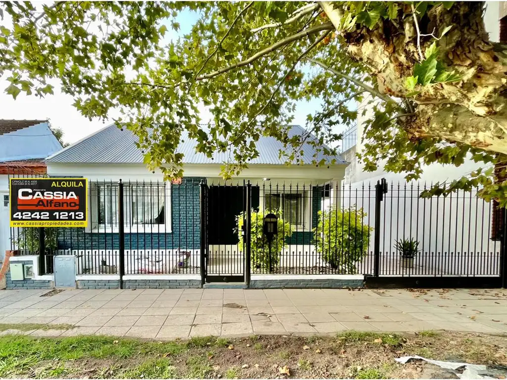PORTóN DE REJAS SOBRE LíNEA MUNICIPAL, JARDíN , COCHERA PASANTE DESCUBIERTA PARA 3 VEHíCULOS, REJAS DE SEGURIDAD PERIMETRAL. PATIO Y PEQUEñO FONDO.