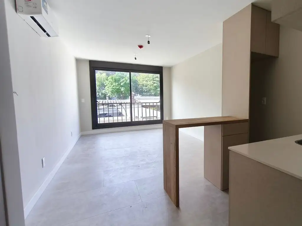La unidad es contrafrente con orientación norte, cuenta con 35 m². Con una distribución funcional y cómoda, posee baño completo y cocina semi integrada equipada con horno, anafe, extractor y barra desayunadora, integrándose armónicamente al ambiente principal.