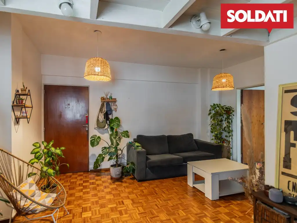 Al ingresar, se destaca un amplio y luminoso living con ventanal y pisos de parquet, que brindan calidez al ambiente.