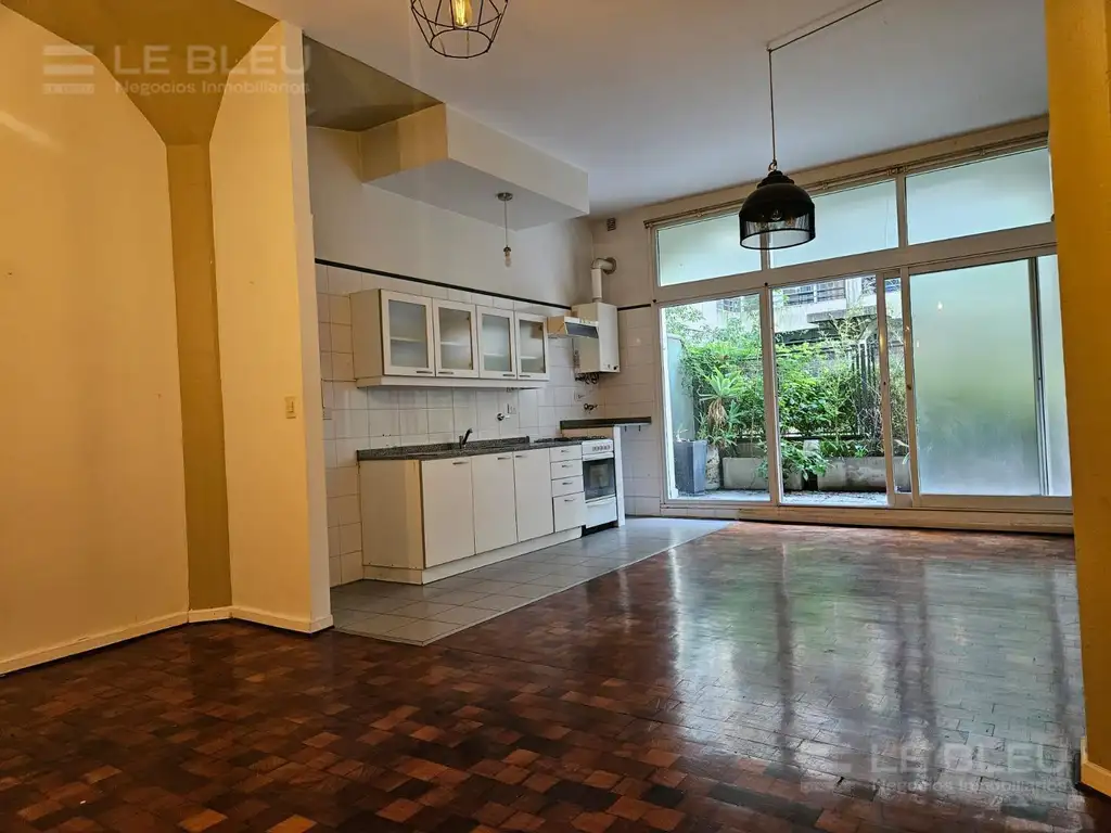Entrás y te recibe un ambiente amplio, con esa doble altura que te da aire, luz y libertad. La madera en el piso, la iluminación colgante tipo industrial y la cocina integrada generan un lugar cálido pero con personalidad, perfecto tanto para relajarte como para recibir gente. Es de esos espacios donde todo fluye.