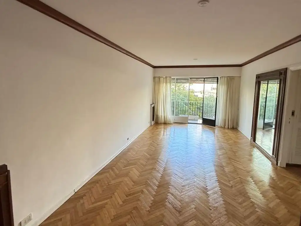 Hall de recepción, amplio comedor con piso de roble de Eslavonia, living con balcón al frente, vista abierta.