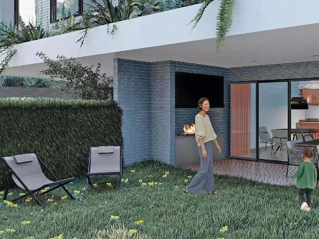 Cuenta con una amplio living con cocina americana. Amplios ventanales. Jardín. Parrilla. Vistas a espacios verdes. Dps dormitorios, uno en suite. Baño completo.