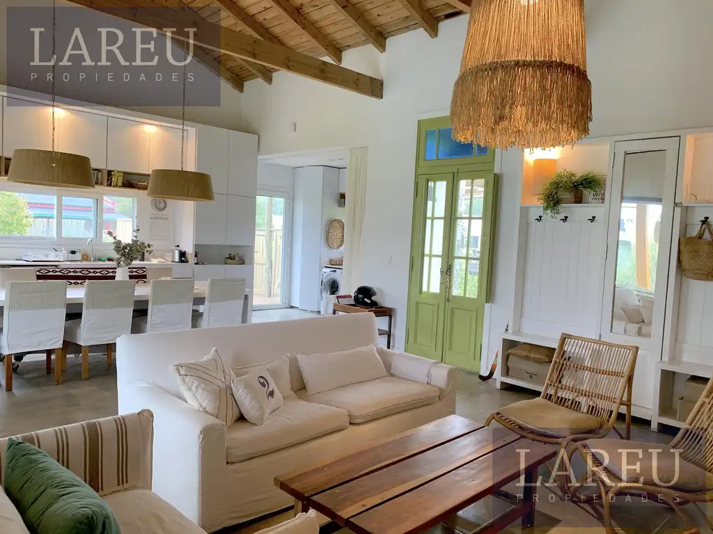 El hogar se distingue por sus amplias áreas comunes, que incluyen un living comedor, una oficina o escritorio, un family. La cocina integrada moderna está equipada con electrodomésticos de alta gama, como lavavajillas, microondas, heladera, freezer, cafetera Nespresso, juego de vajilla para 18 personas, lavarropas y secarropas.