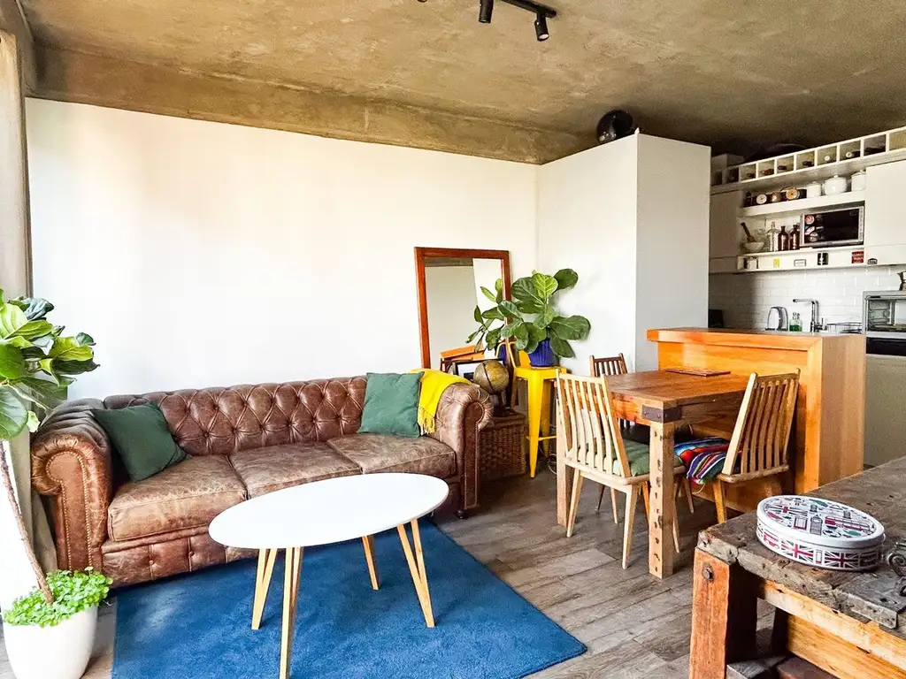 Al ingresar, nos encontramos con un living comedor cómodo, canchero y muy luminoso, integrado a la cocina por medio de una barra que suma funcionalidad y genera un espacio social muy bien resuelto. La cocina acompaña con buen diseño y aprovechamiento del espacio, ideal para el día a día. Desde el living tenemos salida al balcón terraza, un espacio ideal ya sea para armar un rincón verde, desayunar al aire libre, leer, trabajar un rato afuera o simplemente bajar un cambio al final del día.