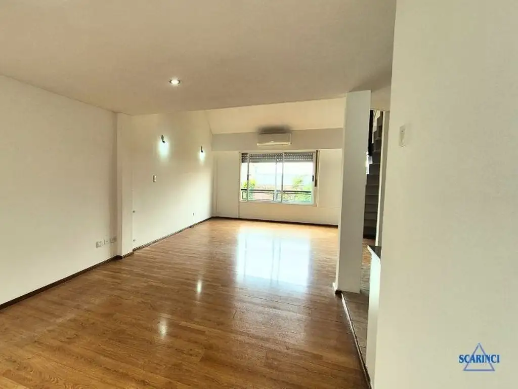 Moderno departamento de 2 ambientes con puerta de ingreso blindada, más posible escritorio desarrollado en tipología dúplex, ubicado en un 5to. piso con disposición al contrafrente, lo que garantiza una vista despejada y mayor silencio. Con una superficie total de 59 metros cuadrados, la unidad cuenta con una antigüedad de 20 años y se mantiene en muy buen estado de conservación. Su diseño funcional separa perfectamente el área social de la privada en dos niveles.