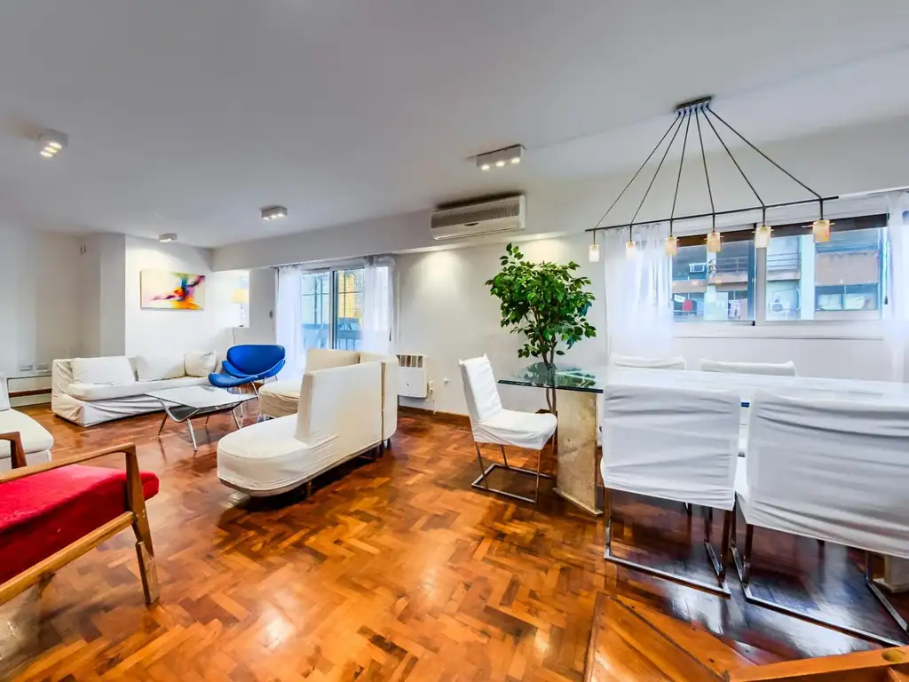 - Amplio livingcomedor con salida a balcón al frente sobre Av. Vélez Sarsfield, con excelente luz natural.