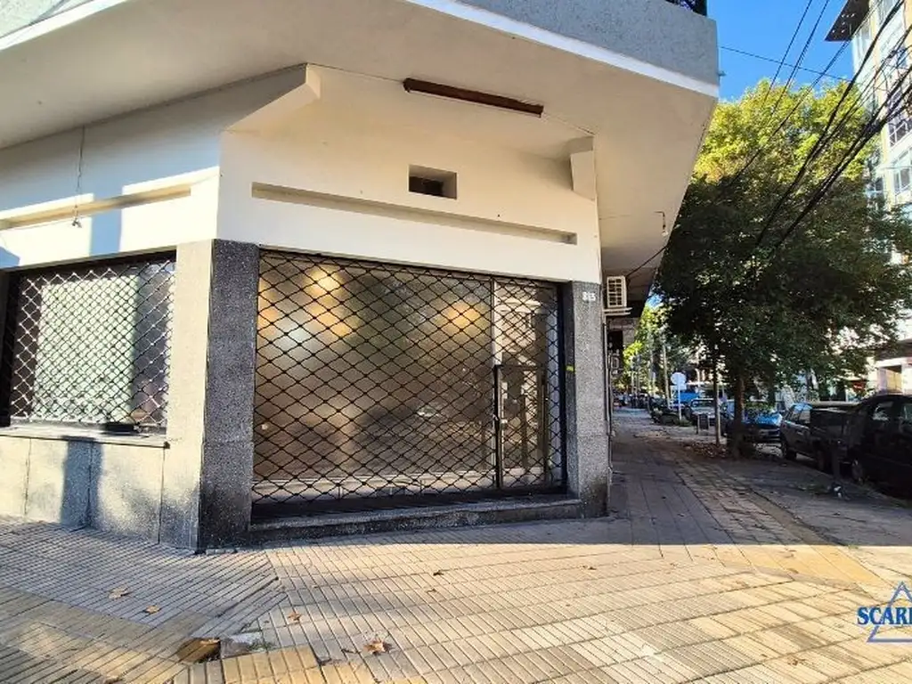 Local en venta con ventanales y puerta de entrada (la cual es por la ochava) con rejas de persiana de tipo mallada.