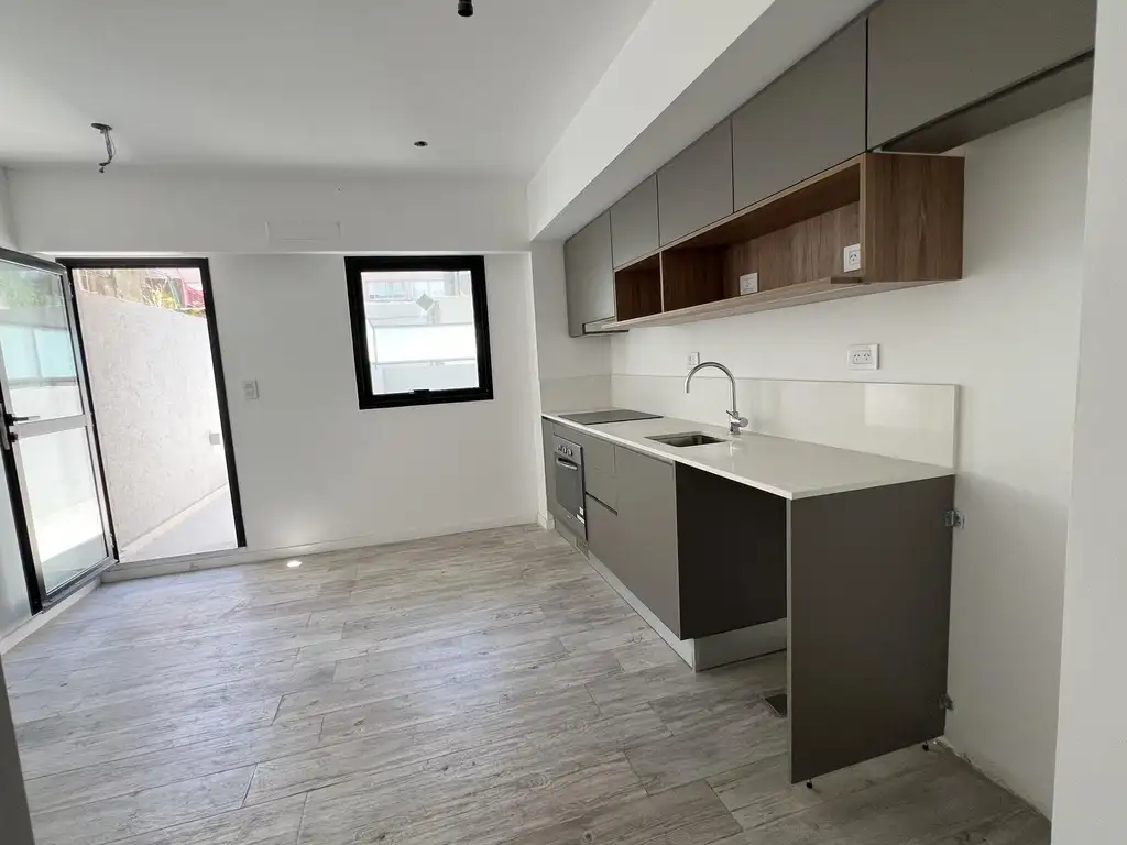 -Bajo mesada y alacena en melamina texturada. Artefacto cocina: 4 anafes y horno, ambos eléctricos.
