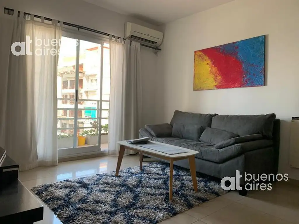 Moderno departamento luminoso con balcón y vista al contrafrente.