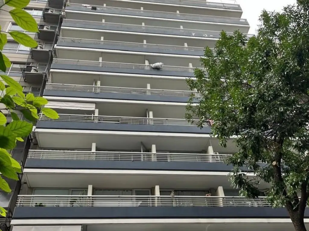Departamento al frente con salida a Balcón Piso 14° vista abierta a ciudad, ambiente amplio divisible, piso de parquet prefinish, placard de dos hojas de excelente tamaño, cocina tipo office, cuenta con una heladera bajo mesada y espacio de guardado con alacenas, baño completo con mesada de mármol travertino. Esta equipado con aire acondicionado y posee agua caliente y losa radiante central.