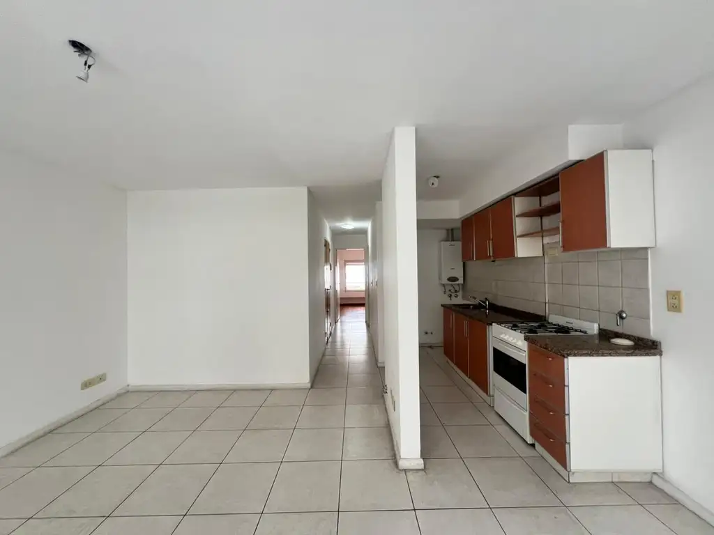 Cocina semi integrada con amoblamientos completos de alacena y bajo mesada. Instalacion para lavarropas.