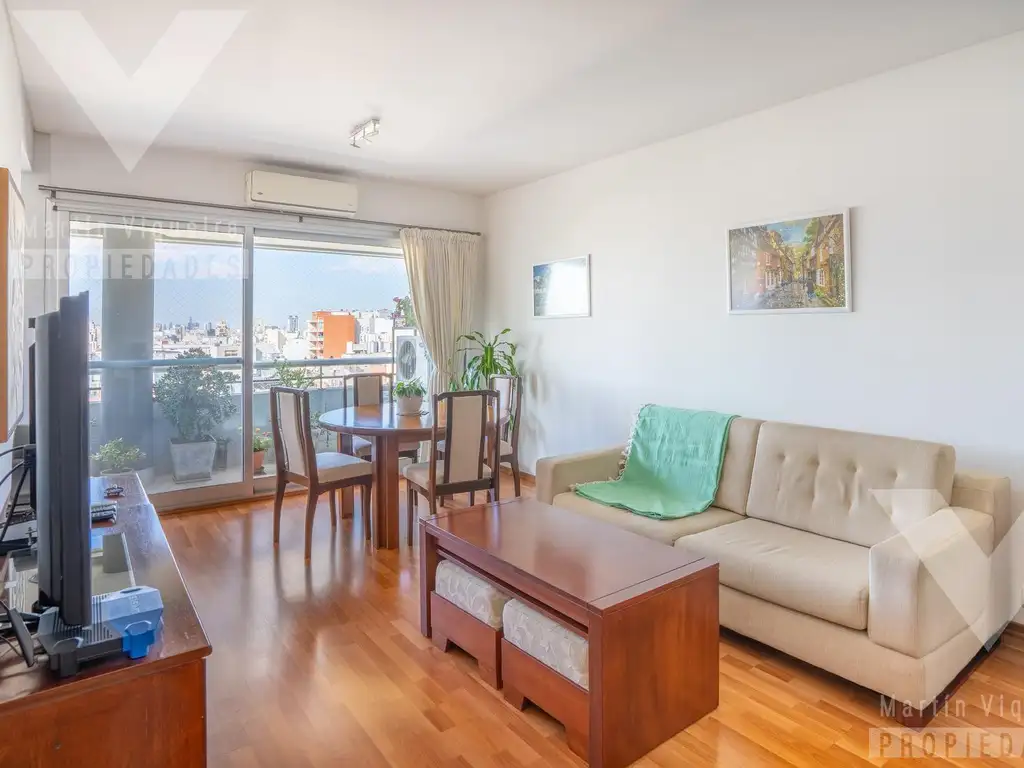 Al ingresar, un hall de recepción da paso a un living comedor de generosas dimensiones, con salida a un balcón corrido de aproximadamente 3,65 x 1,40 metros. Desde allí se aprecia una vista abierta que potencia la sensación de amplitud y conexión con el exterior. La luz natural convierte a este espacio en uno de los grandes protagonistas de la propiedad.