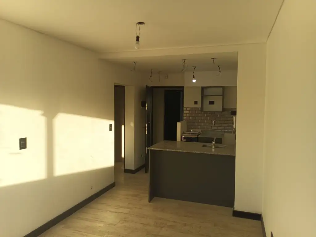 Las unidades cuentan con estar comedor con cocina integrada, pisos de Porcelanato, amoblamientos de cocina bajo y sobre masada melamínicos, mesada de granito con bacha de acero inoxidable, artefacto de cocina instalado a gas marca Escorial, caldera dual marca Ariston; baño con ducha y accesorios instalados, revestimientos porcelanato y cerámicos; dormitorio con pisos de porcelanato, placard con frente e interiores melamínicos con puertas de dos hojas corredizas con tiradores de cierre suabe. Grifería FV, Losa Ferrum. Portero visor. Preinstalación equipos Split, preinstalación para colocar radiadores de calefacción a gas.