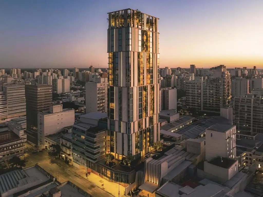 PROYECTO: MRN, torre de 25 pisos con unidades residenciales y oficinas aptas profesionales con núcleo separado y ascensor propio. Planta baja con amenities de pileta, quinchos o SUM, gimnasio, cowork, bicicleteros y generador. 3 ascensores en total, control de acceso y seguridad 24 horas. Cocheras en 2 subsuelos con rampa fija de hormigón. Bauleras opcionales. Plaza jardín en azotea con vistas panorámicas 360a a toda la ciudad.