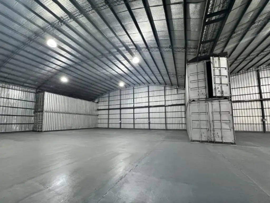 Dispone de un galpón de 1.900 m² con pisos de hormigón de alto tránsito, altura máxima de 9 metros y mínima de 6,50 metros, permitiendo el ingreso y operación de maquinaria de gran porte. Cuenta con persianas metálicas de seguridad.