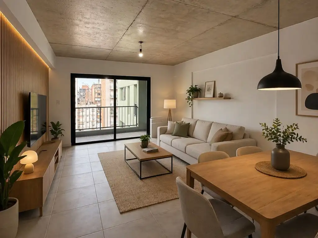 La unidad cuenta con aproximadamente 47 m2 totales (42 m2 cubiertos), lo que la posiciona muy por encima del promedio en su tipología. Al ingresar, nos encontramos con un ambiente principal de generosas dimensiones, que permite sectorizar cómodamente living y dormitorio, con múltiples opciones de armado según necesidad.