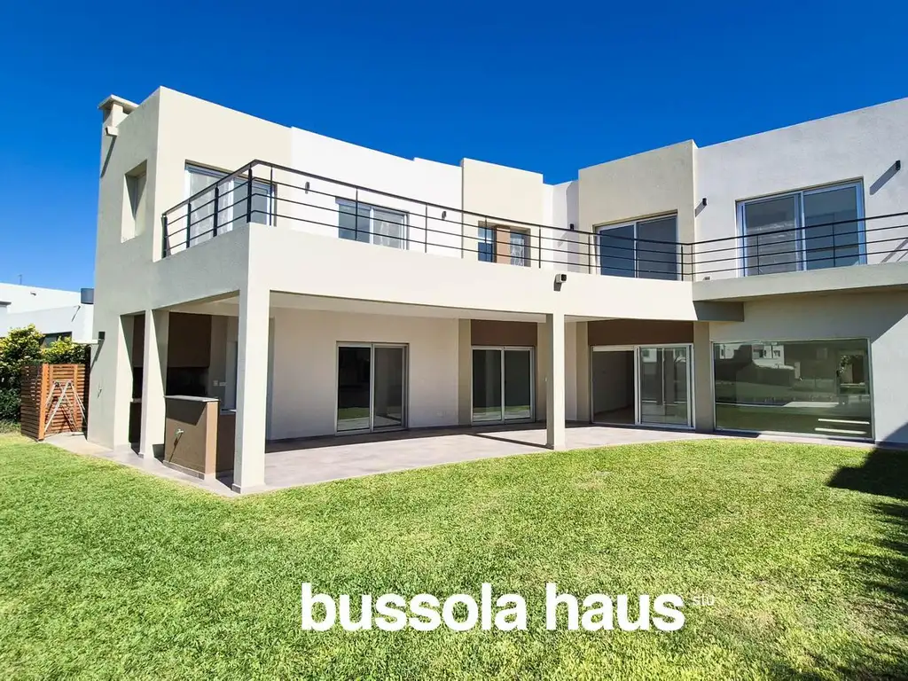 De estilo moderno desarrollada en dos plantas, ubicada sobre lote a la laguna, con vistas abiertas al agua.