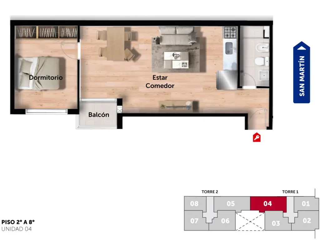 San Martin y Urquiza - Dpto de 1 Dormitorio.